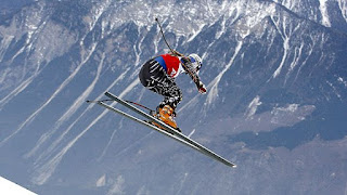 Audrey realised that with this last development she started being forced to see where the next turn would be - prior to completing the current one - but that this happened automatically. We exploited this for the next exercise which was to use the "lifting up" power of the ski at the end of the turn to be a signal for anticipating the following turn. Thinking of the turn completion this way worked for Huw who experienced the "bounce" happening to him for the first time (instead of him "trying" to bounce). Using the energy from the skis/system in this way is like tapping into a resonance and a perception shift is required to think at least one turn ahead to deal with the "flow" and linking up of the rhythmical turns. Qualities such as this are the real reason why people love to ski and it's what they feel when bounding down deep fall line powder, or fluidly dancing down a mogul field. Well executed slalom and all good skiing have this quality. (Resonance is best felt on parabolic skis. Zag skis and Fischer slalom skis are excellent for this.) When things "happen to you" in skiing as opposed to trying to make them happen, it is a strong confirmation that you are on the right track with development. The shift in perception experienced is also to some extent an altered state of mind - one that is a prerequisite for creativity in general. It's as if the mind resonates with the environment - opening to it - instead of trying to impose itself and control everything.